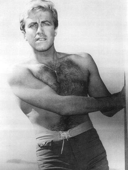Clean-cut, hirsutely handsome, blue-eyed blond actor and model ARON KINCAID (1940-2011) earned a minor teen following in the mid-1960s when he became part of the frolicking “beach party” movie scene. Usually playing the snobby, self-involved foil to leading men Frankie Avalon, Tommy Kirk and Dwayne Hickman, he enjoyed several years of sand-and-surfing fun with AIP International, then went on to essay other comedic and dramatic parts on both the large and small screens. He left Hollywood behind in the 1970s, finding more fulfillment as a male model, artist and poster designer. Suffering from rheumatic fever as a child, he died of a heart ailment at age 70.
