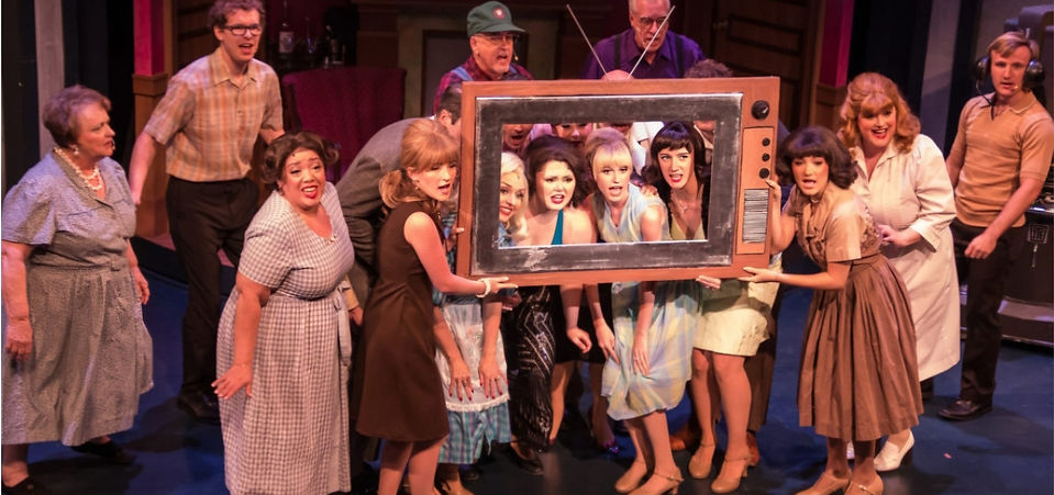 Top (l to r): Caitlyn Glennon (Helga); Tiffany Bishop (Satyrica); Amy Terechenok (Cremehilde); Mark Miller (Vernon); Laurel Hatfield (Sparrow); Chase Williams (Steven); Kelly Wells (Margaret); Dustin Cunningham (Jim); Melina Smart (Claire/Clarita); Wesley Evan Slade (Joey); Mahalia Gronigan (Darvon)