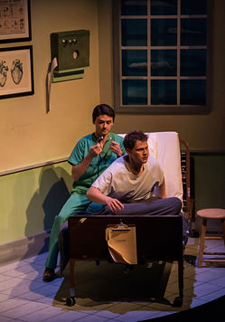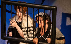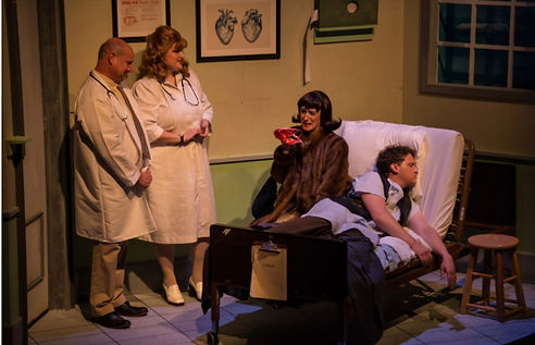 Standing (l to r): TYLER AKIN (Steven); MARIANNE ZICKUHR (Frau Ludwig, Ensemble); FLOREN K (Nurse Claire); JOHN VESSELS (Vernon); ALEX SLADE (Joey, Blaze, Peter); EMILY SCHOERING (Satyrica); A.J. BELLIS (Officer Roebuck, Ensemble); C. KEVIN SWANSEY (Bailiff, Emcee, Ensemble); RICHARD RYAN (Judge Strickland, Ensemble); PAUL DePREY (Jim); CATHY RYAN (Madame Clarita, Ensemble); JOSH SCHMIDT (Officer Sears, Ensemble).