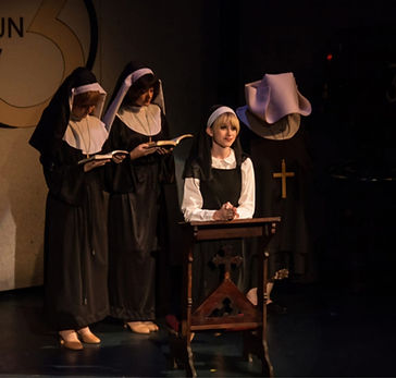 Sitting (l ro r): EMMA LAMBERT (Darvon); KATE REEDY (Cremehilde); JILL HIGGINBOTHAM (Margaret); K.B. MERCHANT (Sparrow); KEIRA OLSON (Nun, Ensemble); GABI VELINOVA (Nun, Ensemble).
